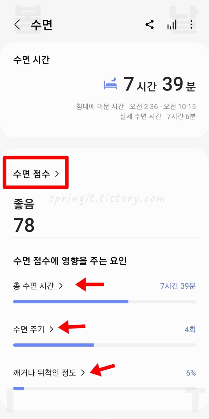 스마트폰에서 상세한 수면 점수 확인하는 방법