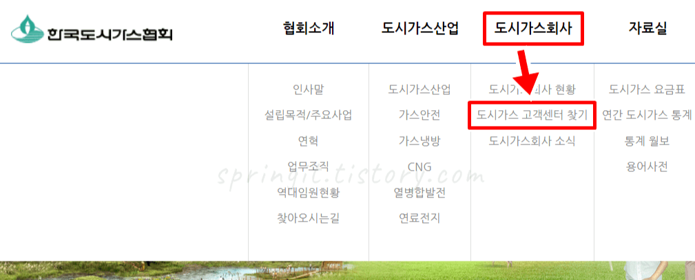 2. 도시가스회사 > 도시가스 고객센터 찾기를 클릭합니다.