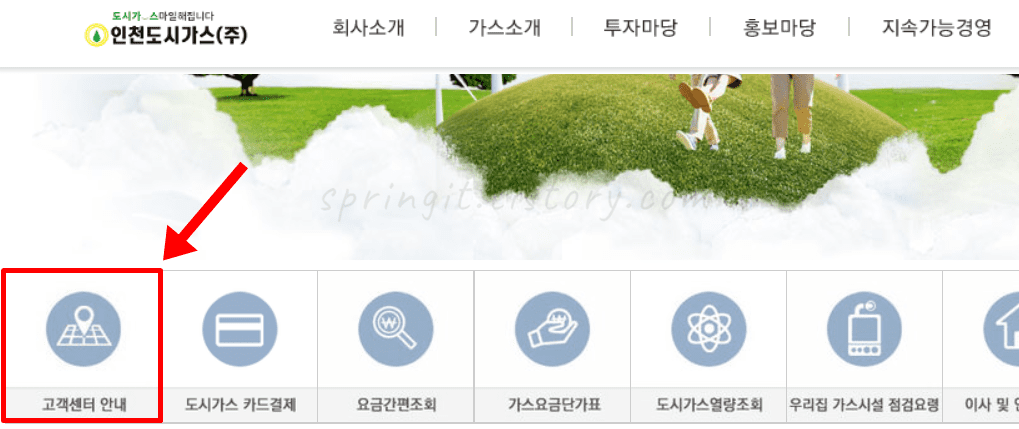 위의 온라인 도시가스 조회 방법의 앞단계를 진행하여 우선 도시가스 요금이 궁금한 지역의 공급 도시가스업체를 확인하셔야 합니다. 이 후 해당 도시가스 업체 사이트의 고객센터로 문의하시면 됩니다.