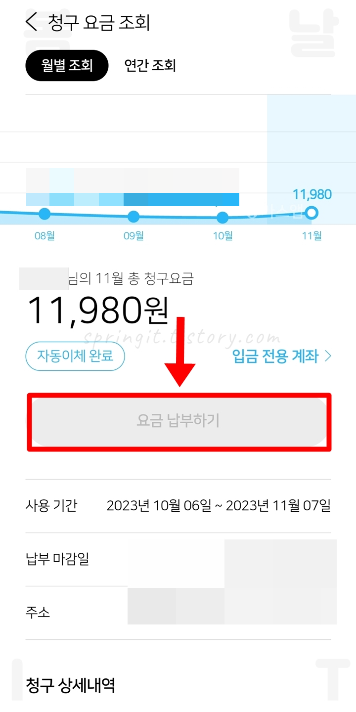 9. 상세한 요금 조회를 위해 요금내역을 클릭합니다.