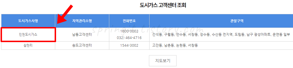 4. 관할구역을 확인하시고 공급하는 도시가스업체명을 확인합니다.