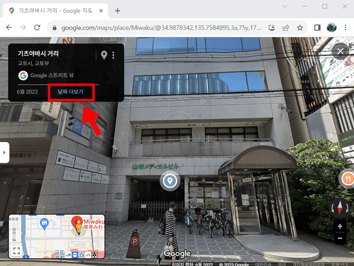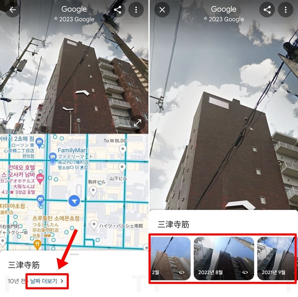 ▲ PC 구글지도 로드뷰 화면에서 날짜 더보기를 클릭합니다.