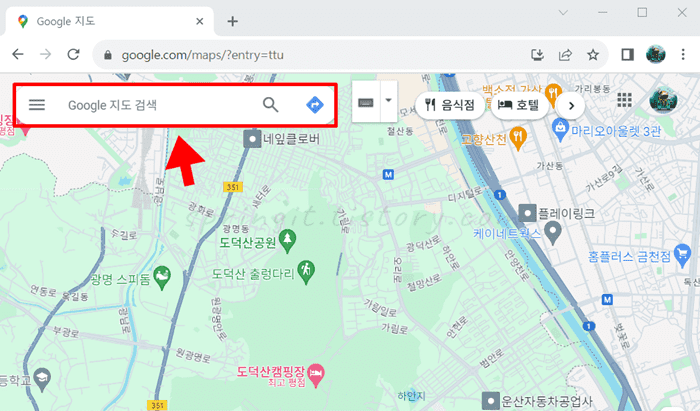 2. 검색창을 눌러서 로드뷰를 보고 싶은 위치를 검색합니다.