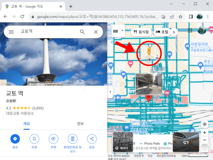 5. PC에서 구글지도 로드뷰(거리뷰)를 확인할 수 있습니다.