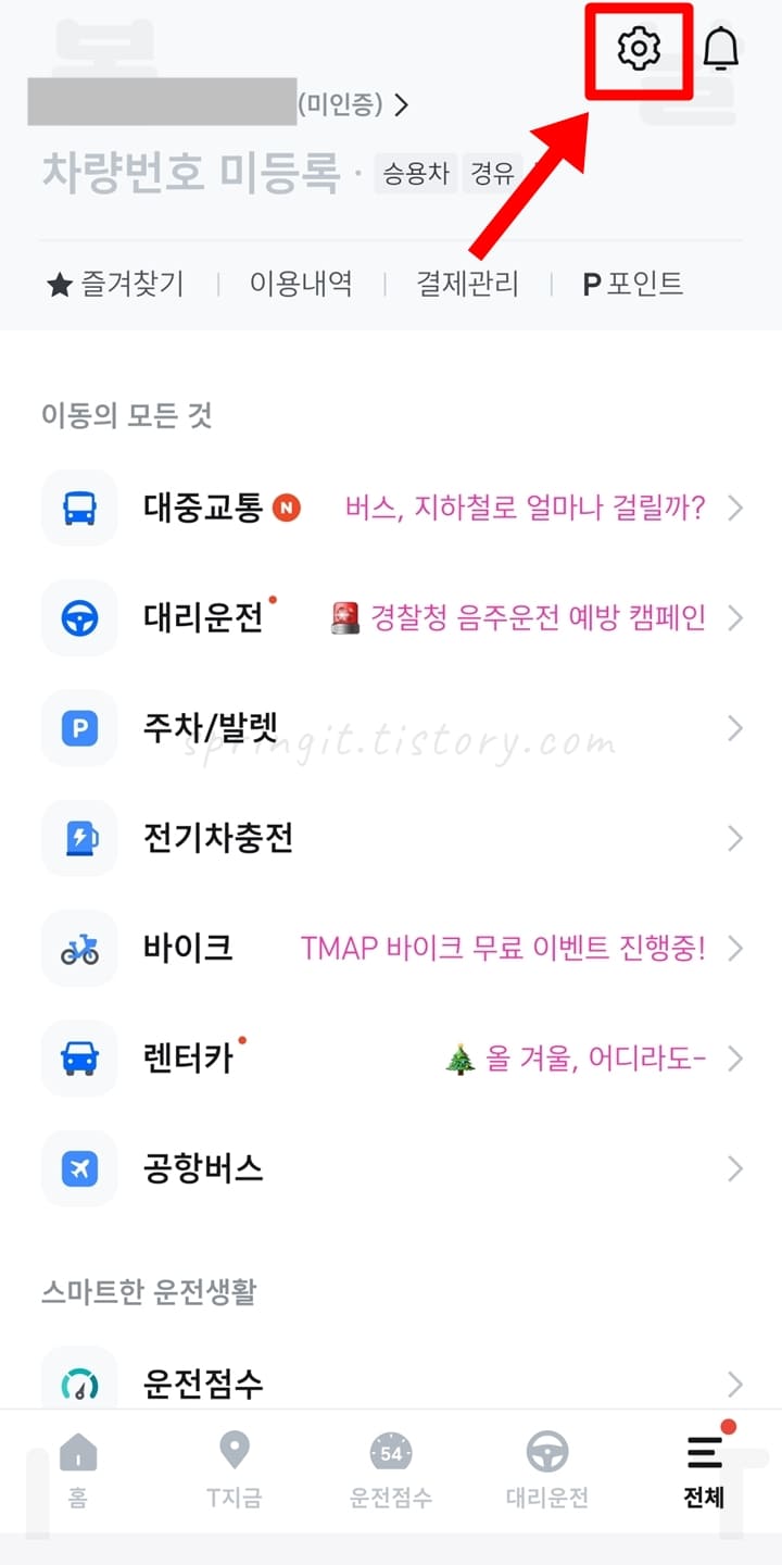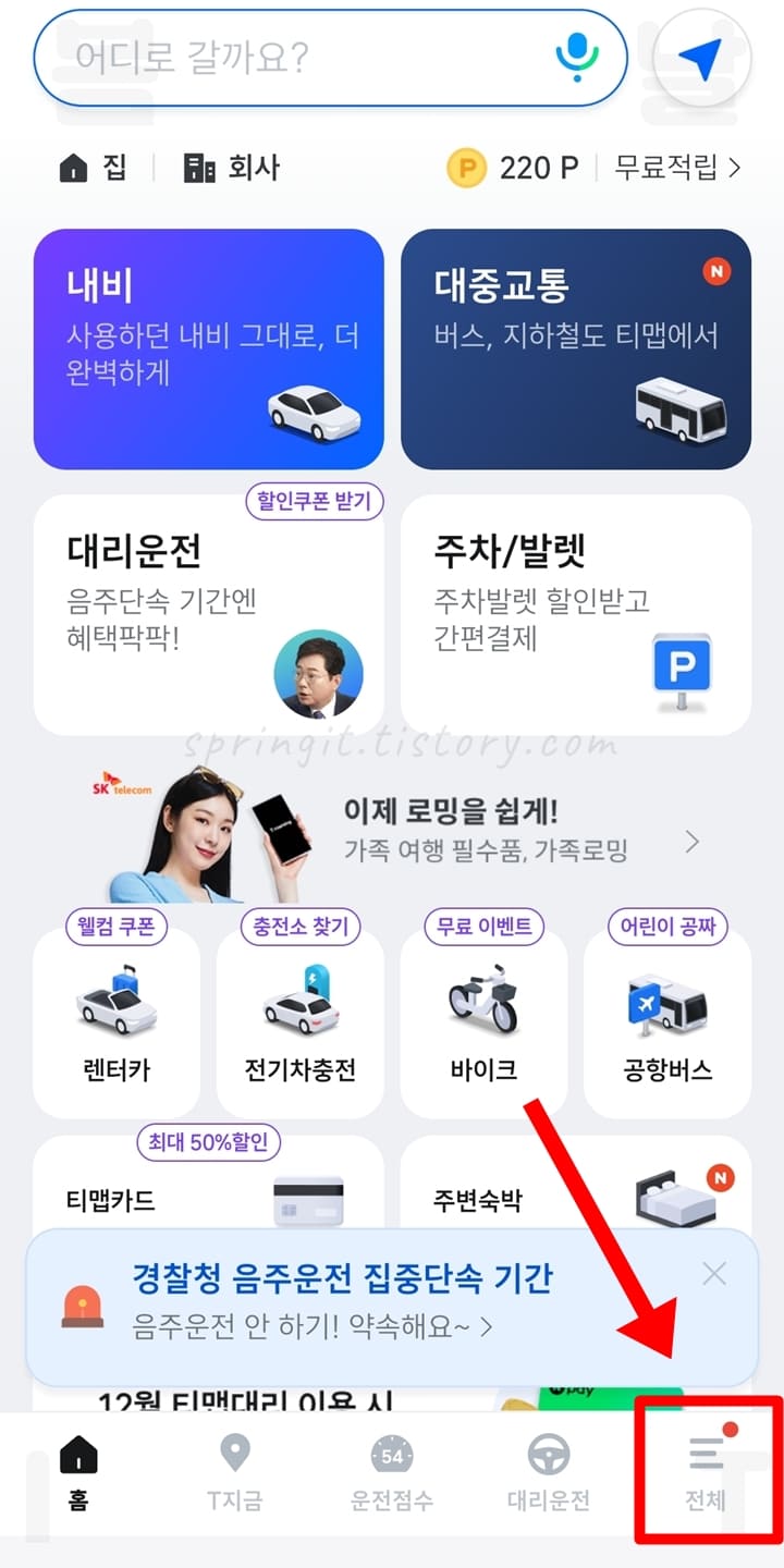 1. 스마트폰에서 티맵 어플을 실행합니다.