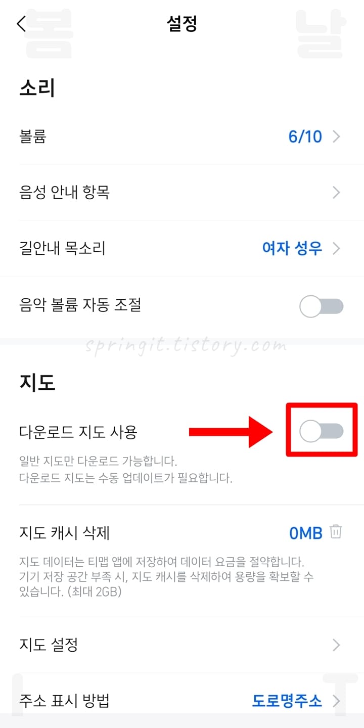4. 다운로드 지도 사용 우측 토글을 클릭합니다.