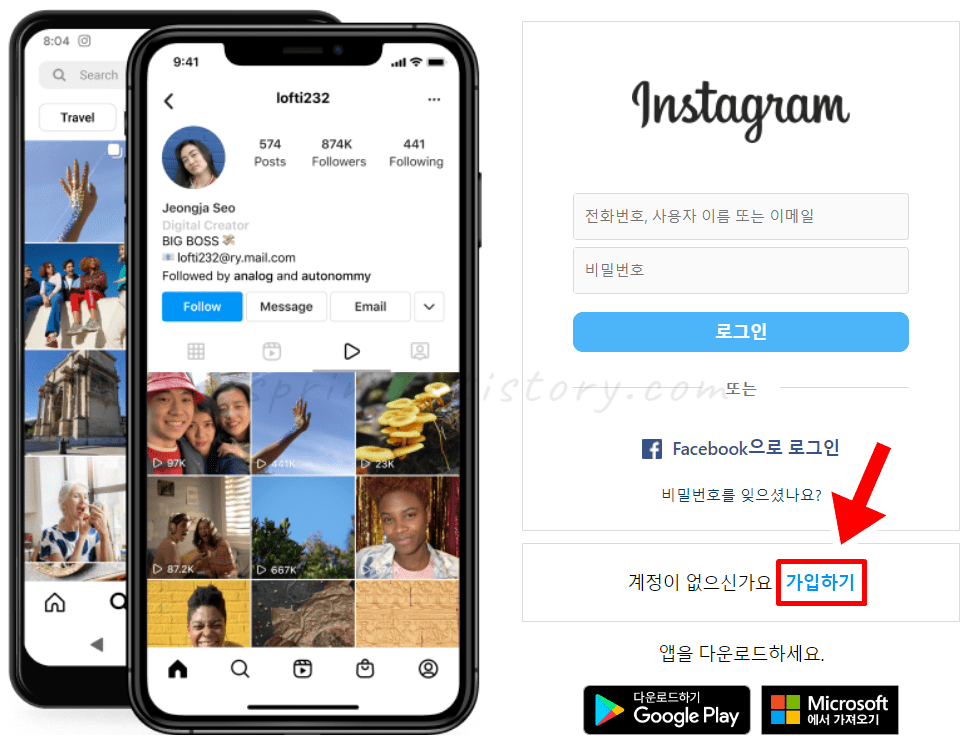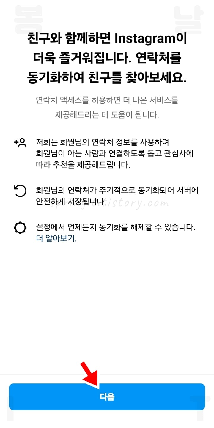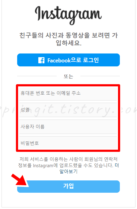 여기까지 봄날의 아이티에서는 인스타그램 가입 방법 2가지를 소개드렸습니다. 이렇듯 PC와 모바일에서 모두 간단하게 인스타그램 가입이 가능하니 편리하게 사용할 수 있는데요. 참고로 인스타그램은 페이스북과 연동하여 로그인하거나 친구들의 정보를 동기화할 수도 있으니 편리하게 활용하실 수 있을 것입니다. 이제 여러분들의 팬(팔로워)들을 만들어보시고 다양한 친구들과 소통하며 즐거운 인스타 생활을 즐겨보시길 바랍니다. 감사합니다.