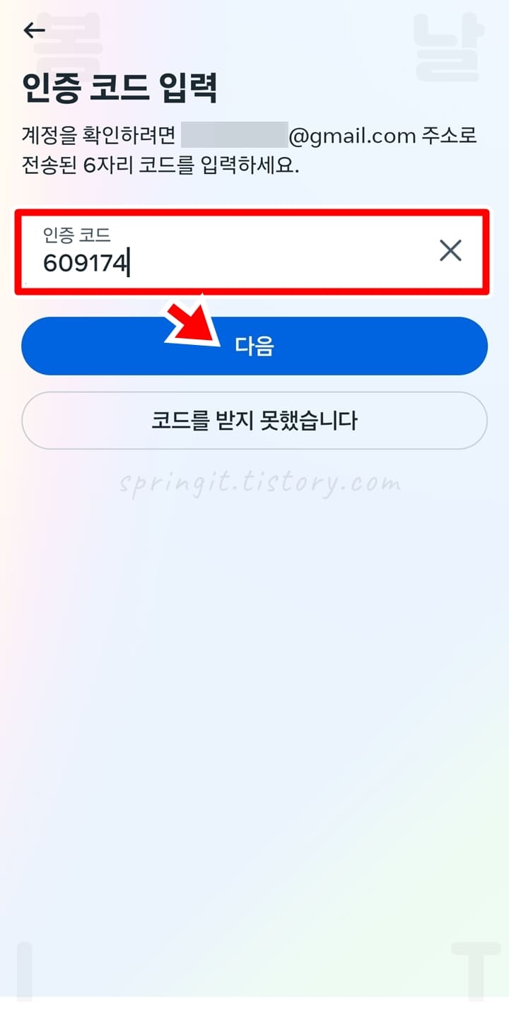 6. 인증 코드를 입력합니다.