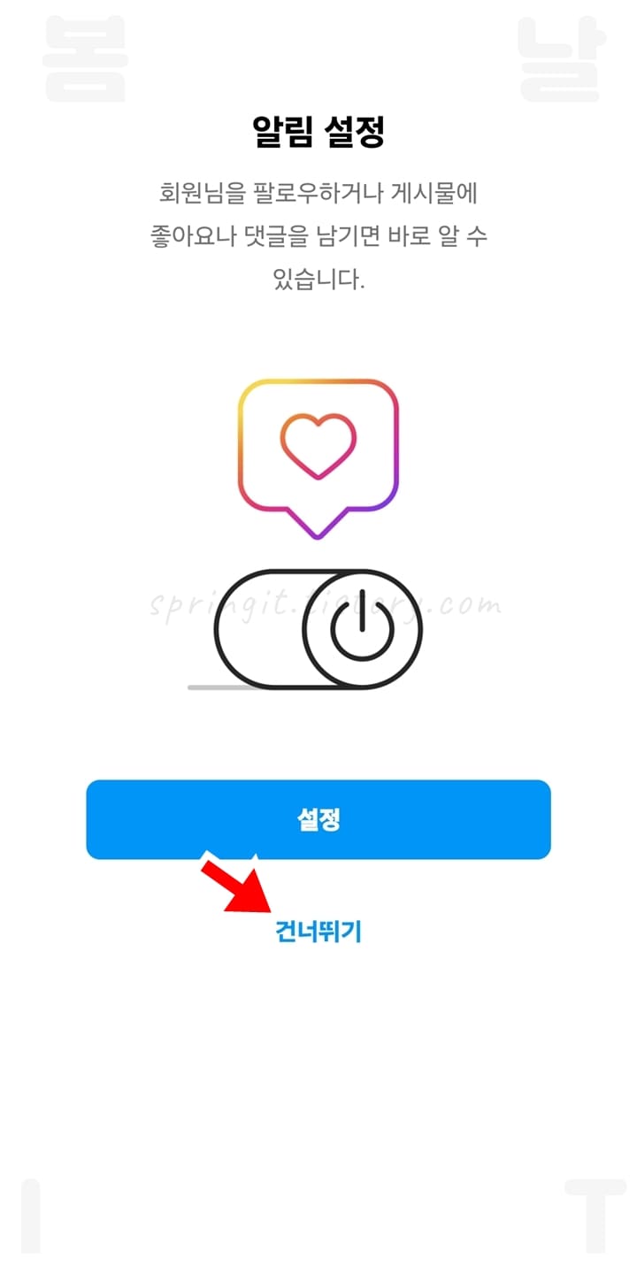 8. 알림 등의 부가 기능에서 설정을 진행하거나 나중에하기를 누릅니다.