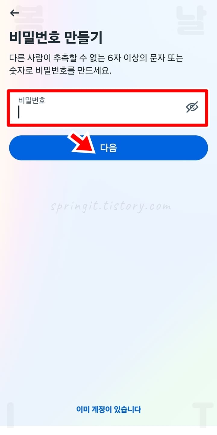 7. 인스타 계정에 사용할 비밀번호를 설정합니다.