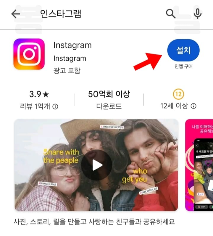 안드로이드(갤럭시 등)를 사용하신다면 구글 플레이 스토어 앱을, 애플 폰을 사용하신다면 스토어 앱을 들어가셔서 인스타그램을 검색 후 설치하세요.