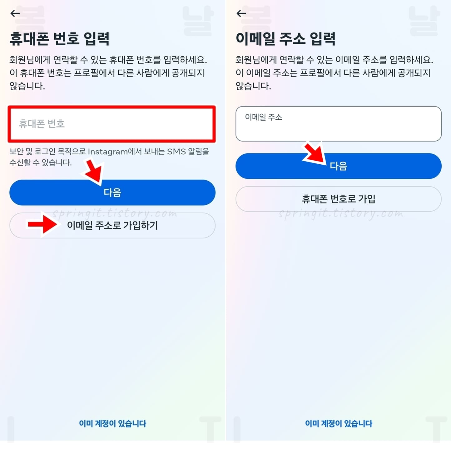 모바일에서 인스타그램 가입 방법