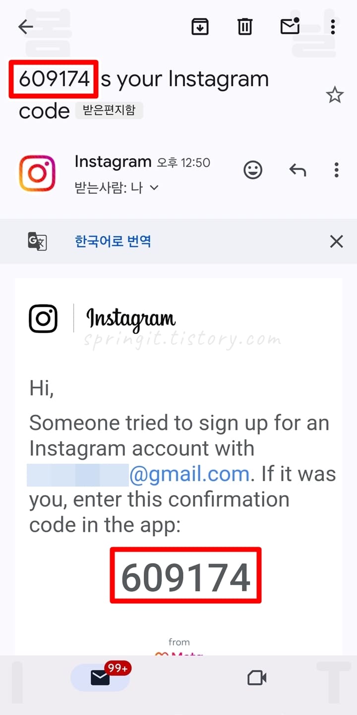 5. 입력한 이메일 또는 휴대폰에 수신된 인증코드를 확인합니다.