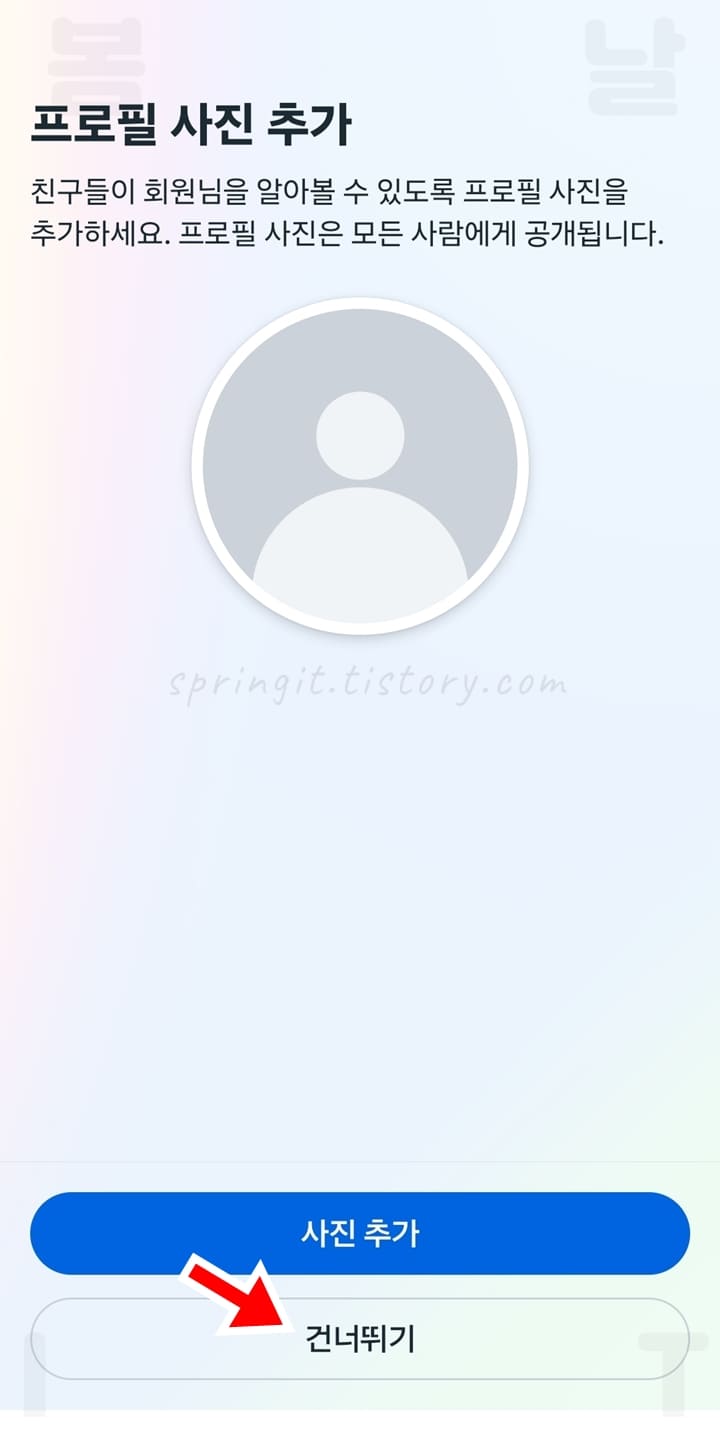 12. 프로필 사진을 설정하거나 건너뛰기를 클릭합니다.