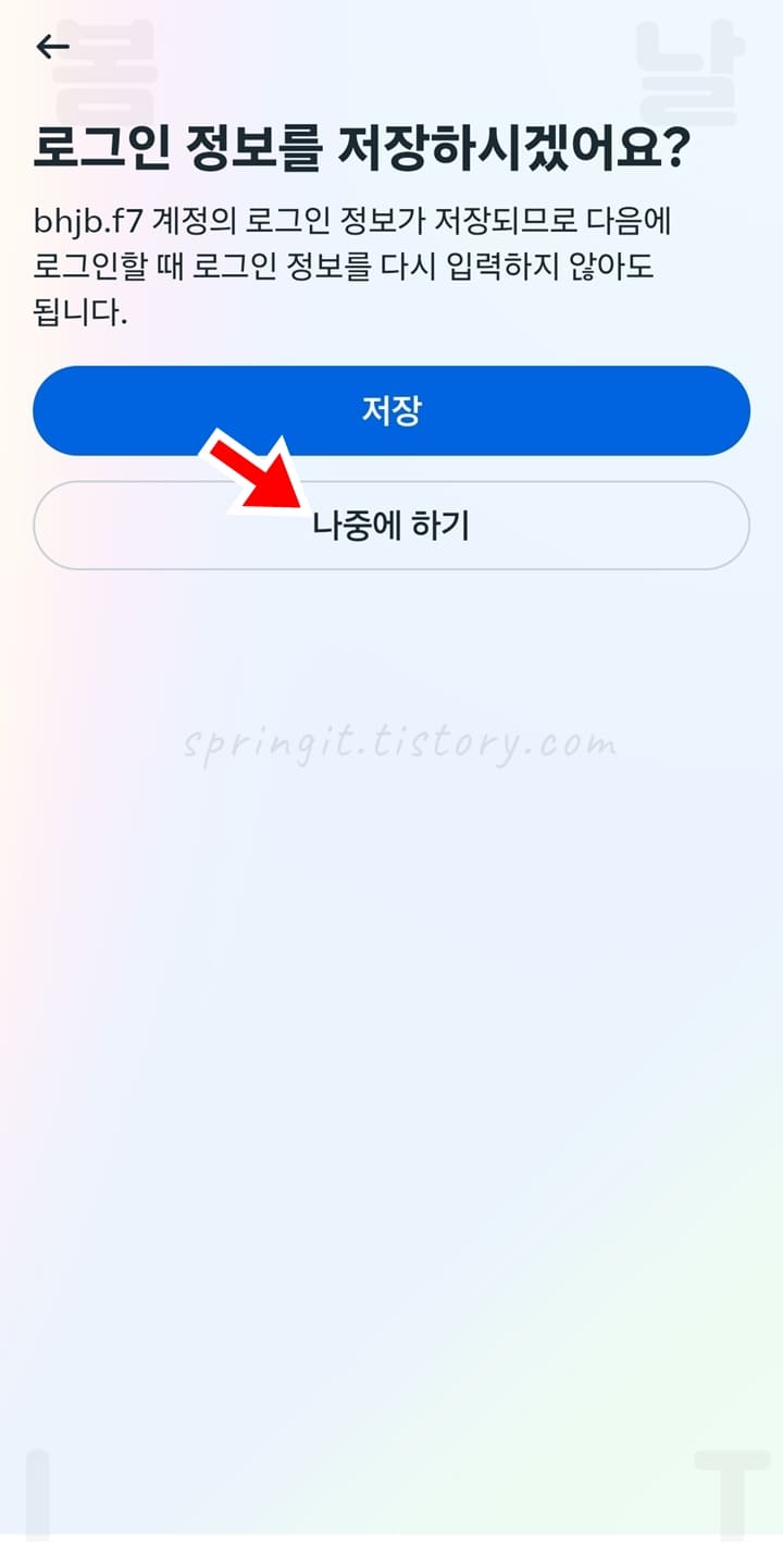 13. 로그인 정보를 저장하거나 나중에 하기를 클릭합니다.