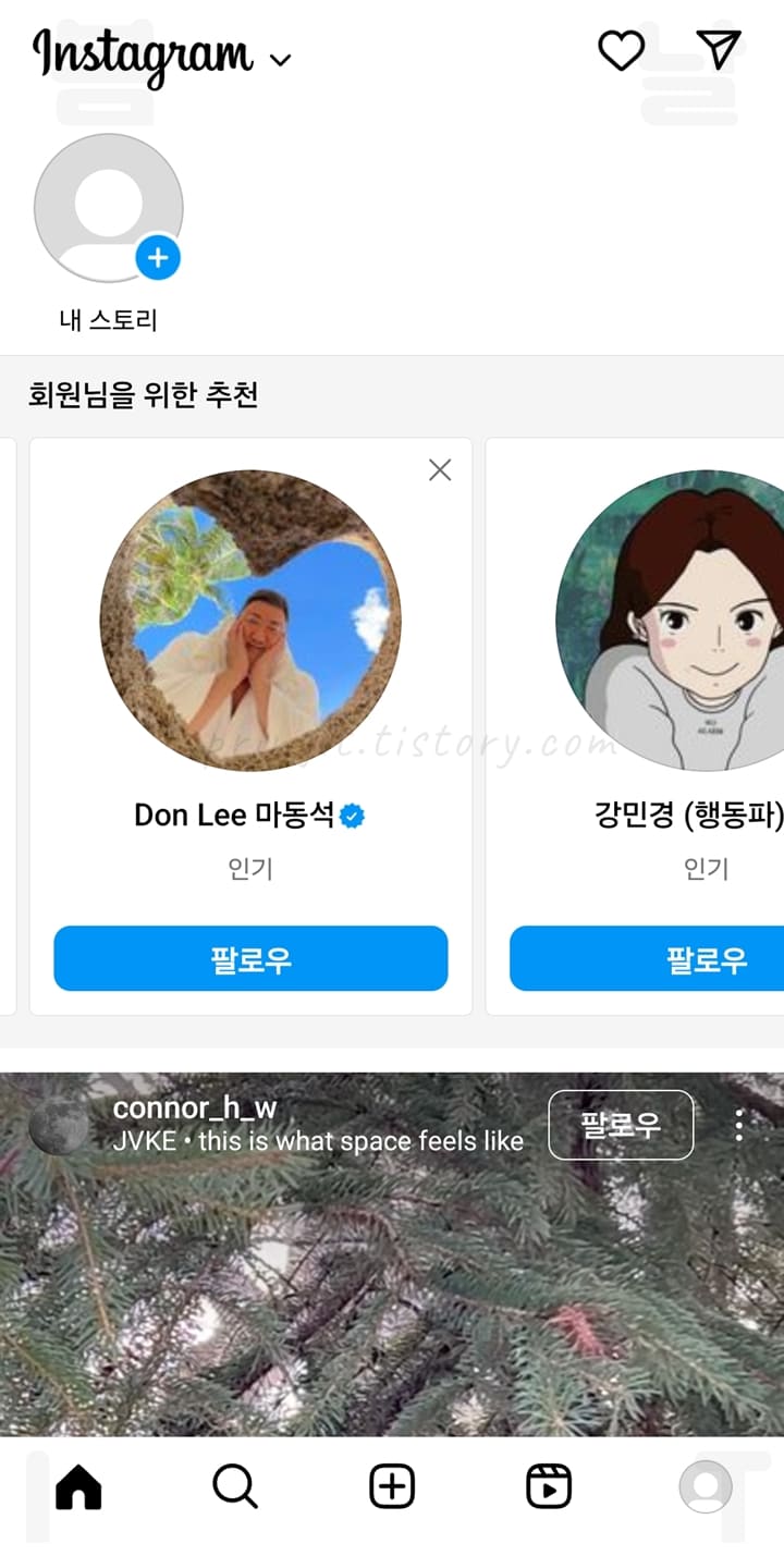 이제 보고 싶은 상대방 계정을 검색하거나 인기 게시물들을 볼 수 있습니다. 또한 팔로우, 팔로잉은 물론 프로필을 수정하거나 게시물도 올릴 수 있으니 재미있게 인스타그램을 활용해보시길 바랍니다.