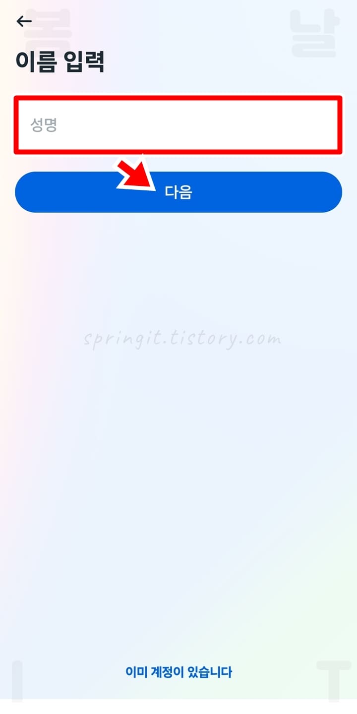 9. 나의 이름을 입력하고 다음을 클릭합니다.