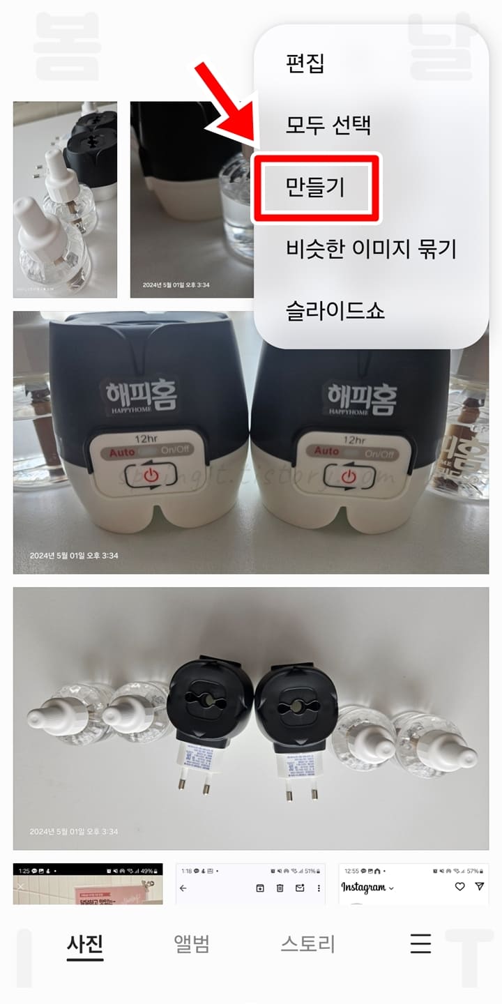 1. 갤럭시 갤러리 앱에서 합치고 싶은 사진을 선택합니다.
