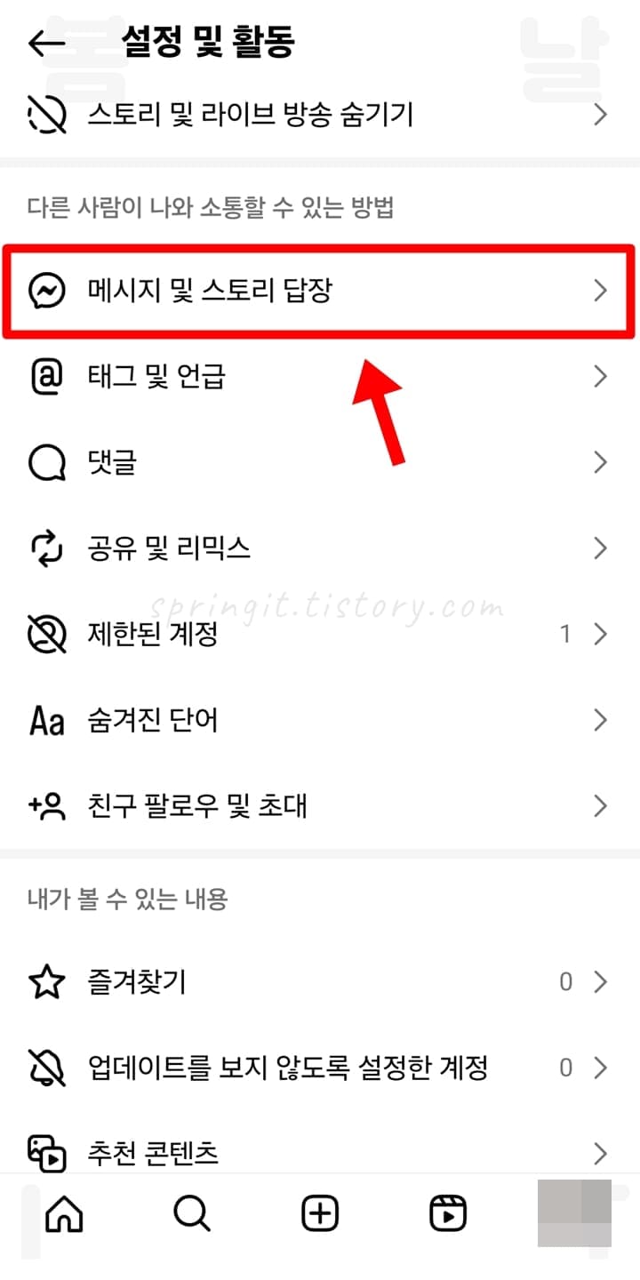 4. 메시지 및 스토리 답장을 클릭합니다.