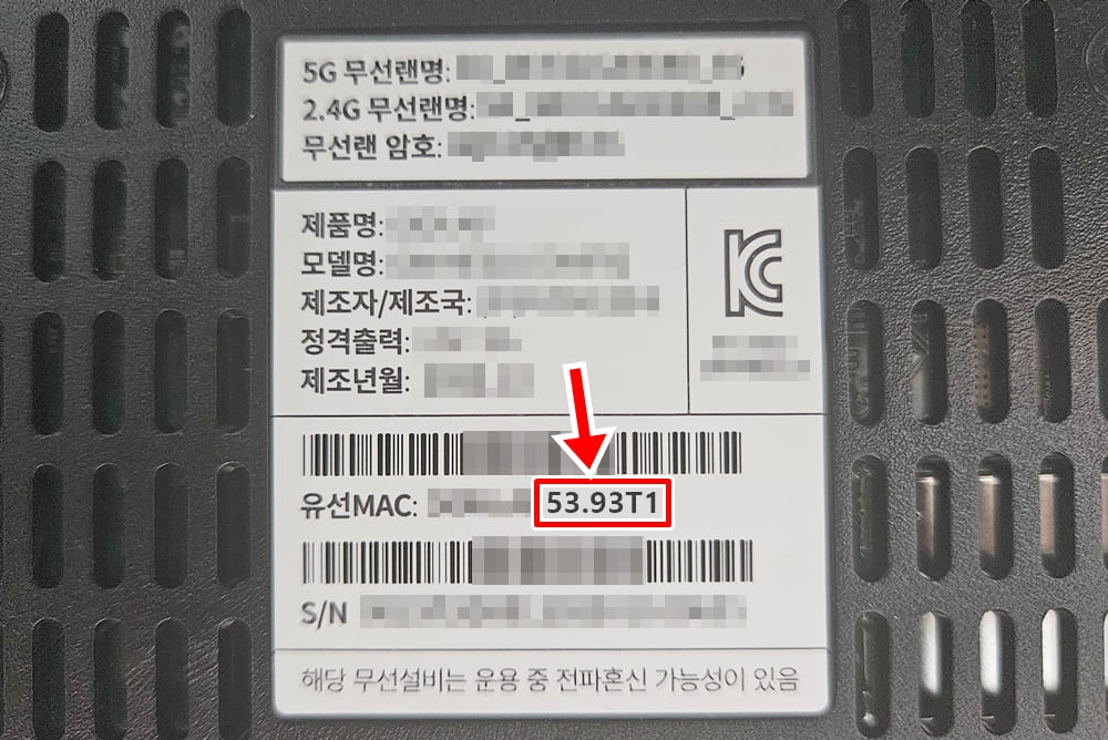 SK 브로드밴드 관리자 비밀번호를 알기 위해선 공유기 뒷면을 확인하신 후 유선 MAC이라는 부분 끝에 굵은 표시로 되어 있는 6자리 문자를 보시면 됩니다.이러한 '6자리 문자 + _admin'이 SK브로드밴드 관리자 비밀번호가 됩니다. 즉 저의 경우에는 5393T1_admin이 비밀번호라고 할 수 있습니다.