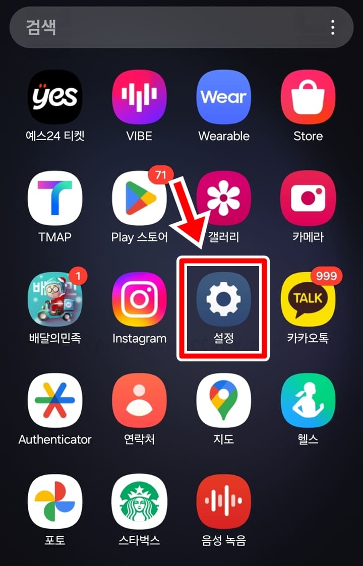 1. 스마트폰에서 설정 앱을 실행합니다.