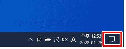 1. 작업표시줄 우측 끝에 있는 알림센터 버튼을 클릭합니다.