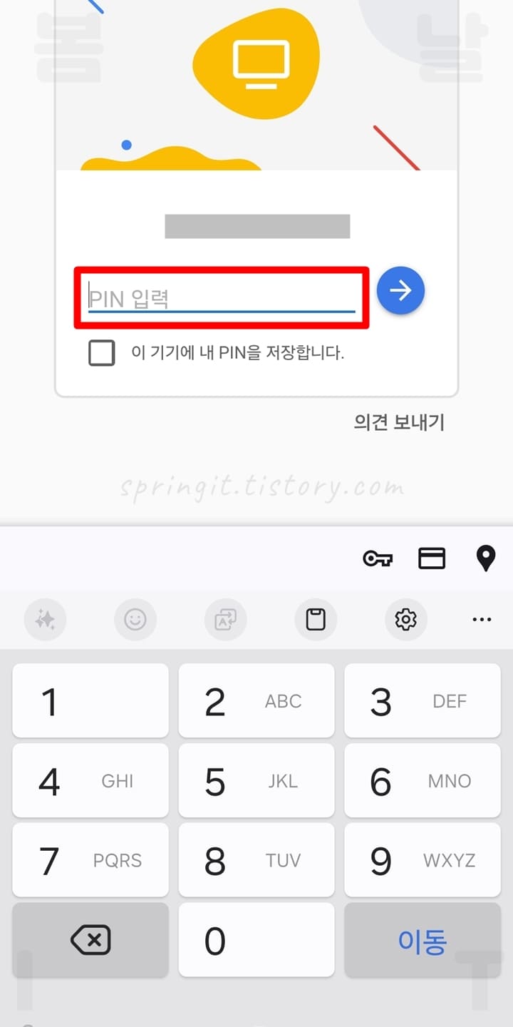 17. PC에서 설정했던 PIN 비밀번호를 입력합니다.