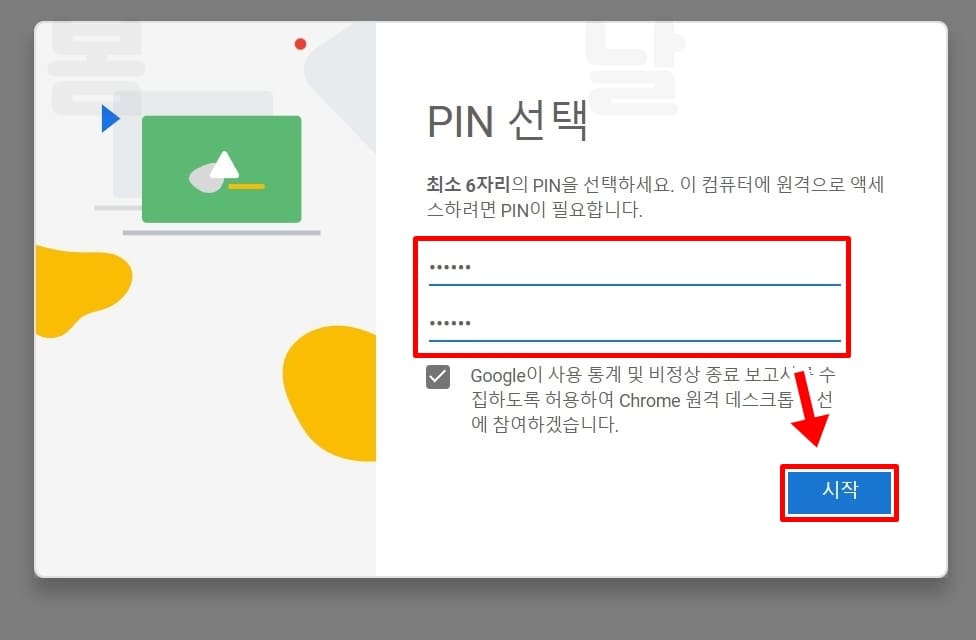 10. 원격 연결에 사용할 PIN 비밀번호를 설정합니다.