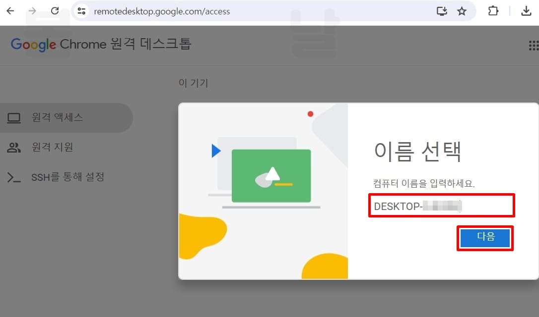 1. PC에서 크롬 원격 데스크톱 사이트로 접속합니다.