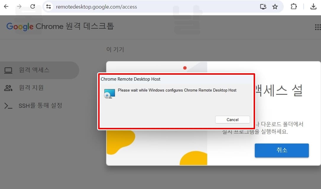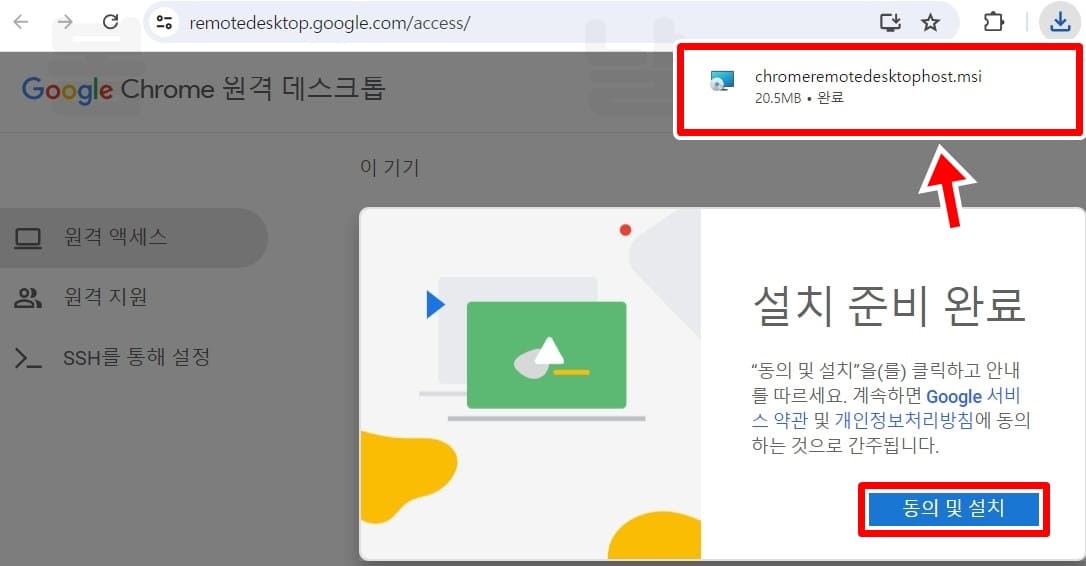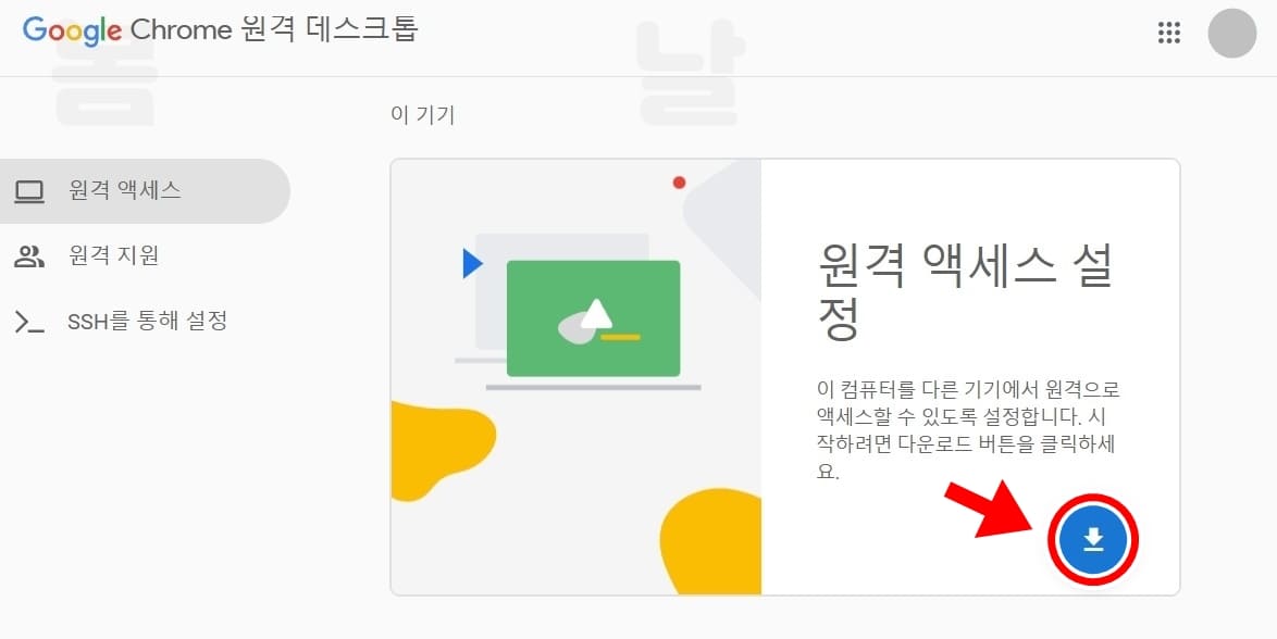 6.다시 크롬 원격 데스크톱 사이트에서 원격 엑세스 설정 다운로드 버튼을 클릭합니다.