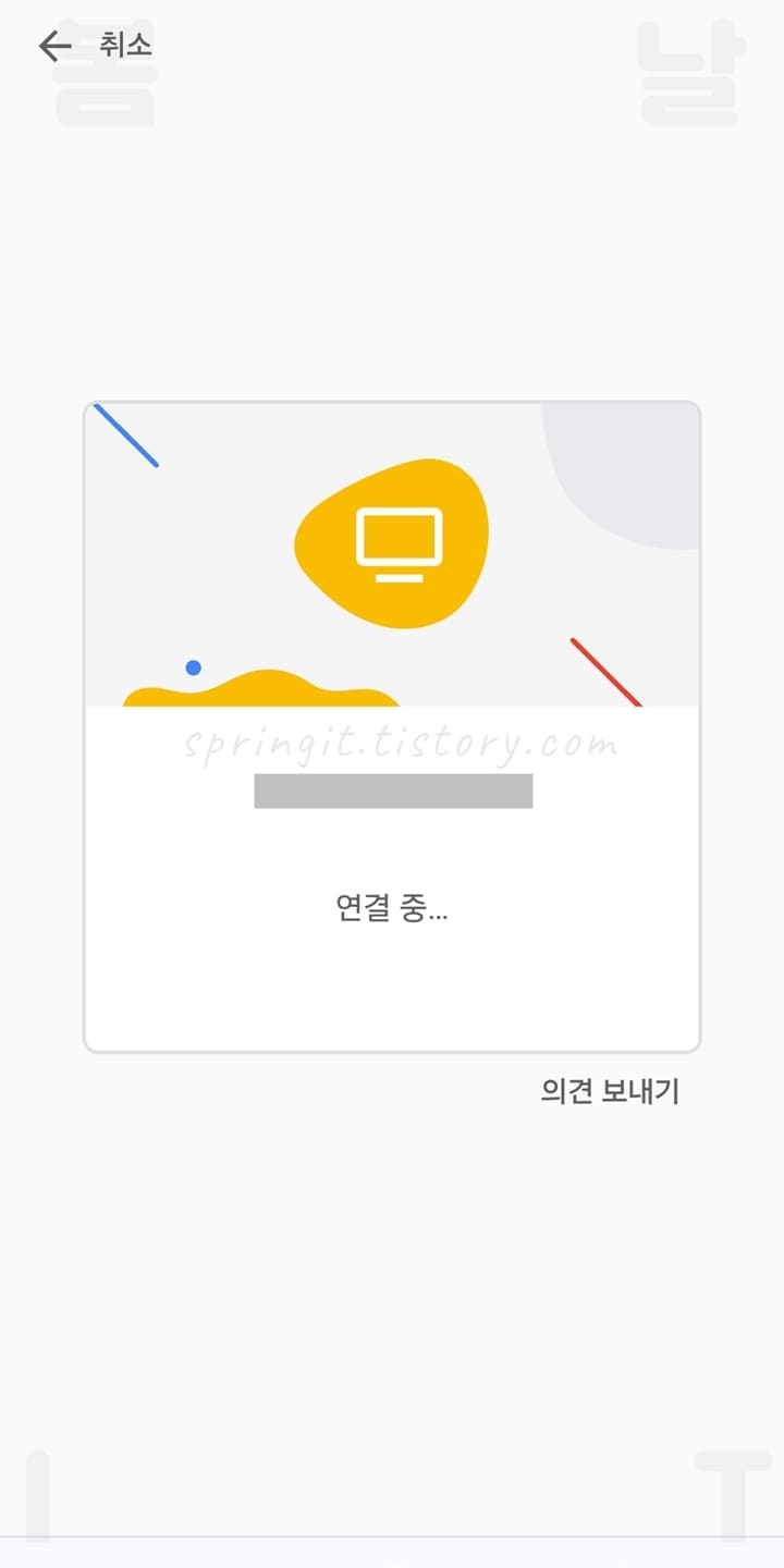 참고로 PC에 로그인된 구글 계정과 동일한 계정으로 앱에 로그인하셔야 합니다. 다른 아이디라면 로그아웃 후 맞는 계정으로 로그인하시면 등록해두었던 PC 정보가 표시되며 원격 연결이 가능합니다.