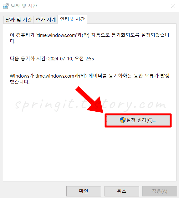 4. 설정 변경 버튼을 클릭합니다.