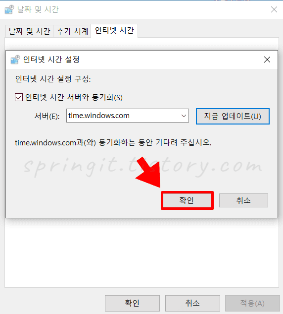 2. 하단의 시간과 날짜 업데이트 버튼을 클릭합니다.