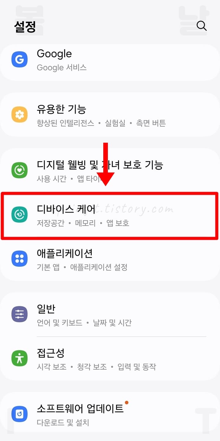 2. 디바이스 케어를 클릭합니다.