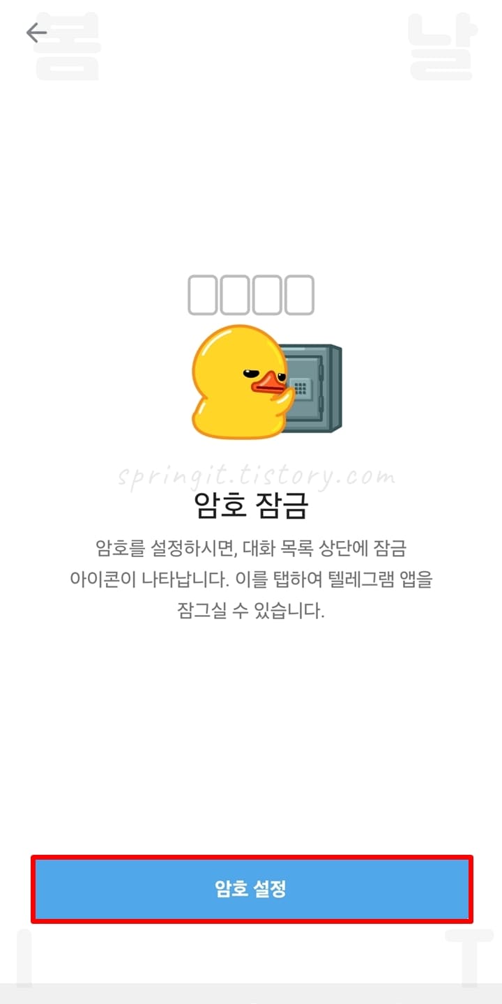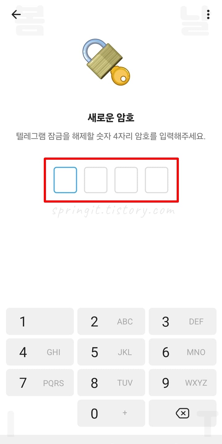 7. 텔레그램 비밀번호로 사용할 숫자 4자리를 입력합니다.