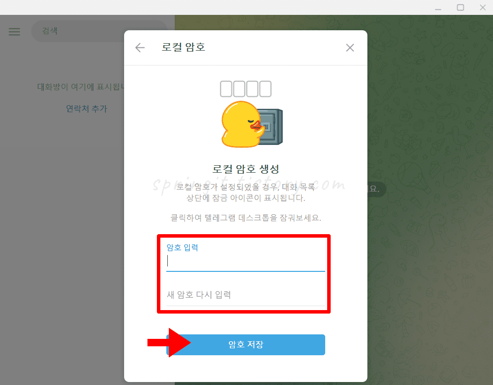 6. PC 텔레그램 비밀번호로 사용할 암호를 입력합니다.