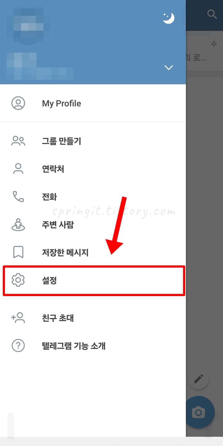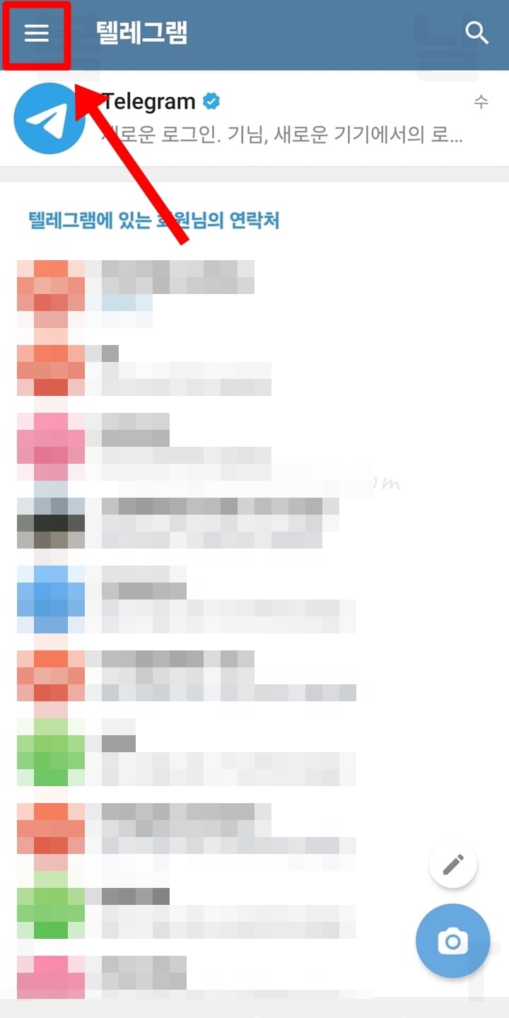1. 스마트폰에서 텔레그램 앱을 실행합니다.
