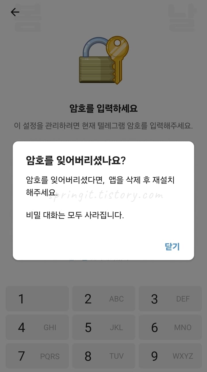 텔레그램 비밀번호 분실시 찾기 및 초기화 방법