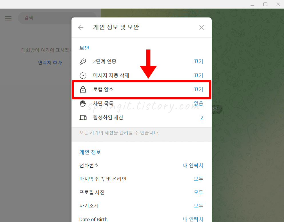 8. PC 텔레그램 비밀번호 설정이 완료되었습니다.