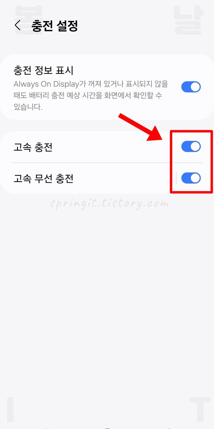 여기까지 봄날의아이티에서는 갤럭시 고속 충전 설정 및 확인 방법 2가지를 소개드렸습니다. 이렇듯 자칫하면 고속 충전기를 샀음에도 느린 충전 속도로 제한하여 사용되기 때문에 꼭 설정을 확인하신 후 기능을 켜주시길 바랍니다. 많은 도움이 되셧길 바랍니다.