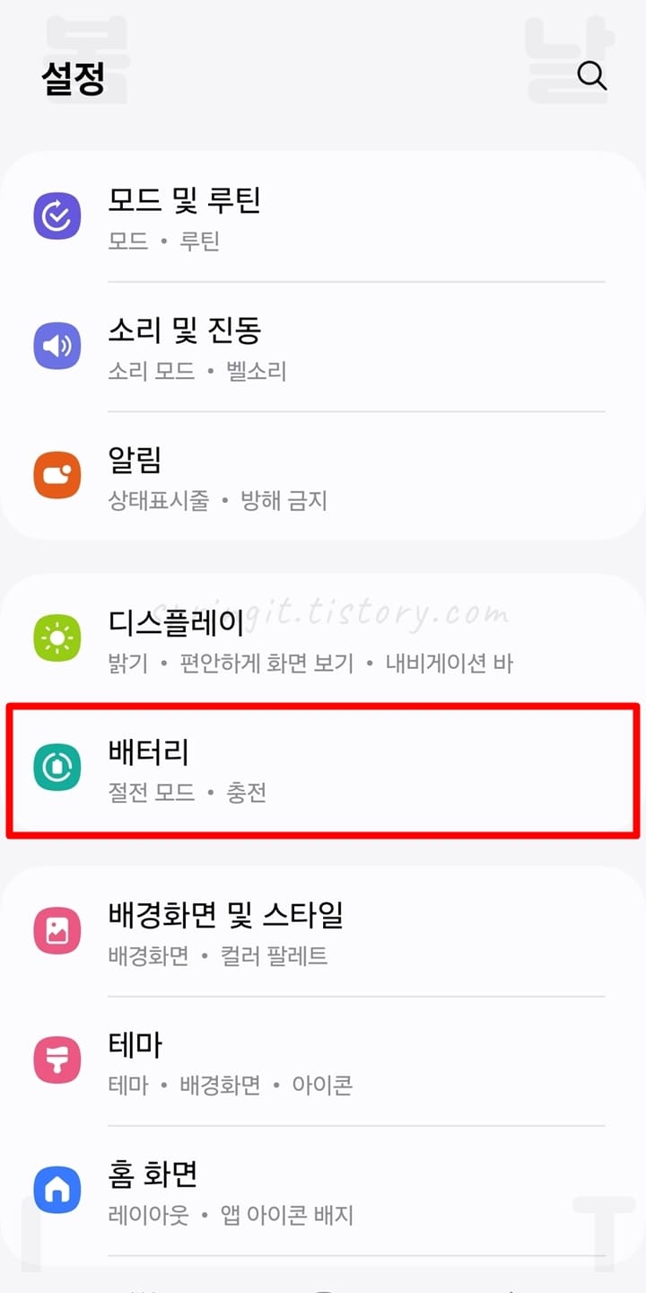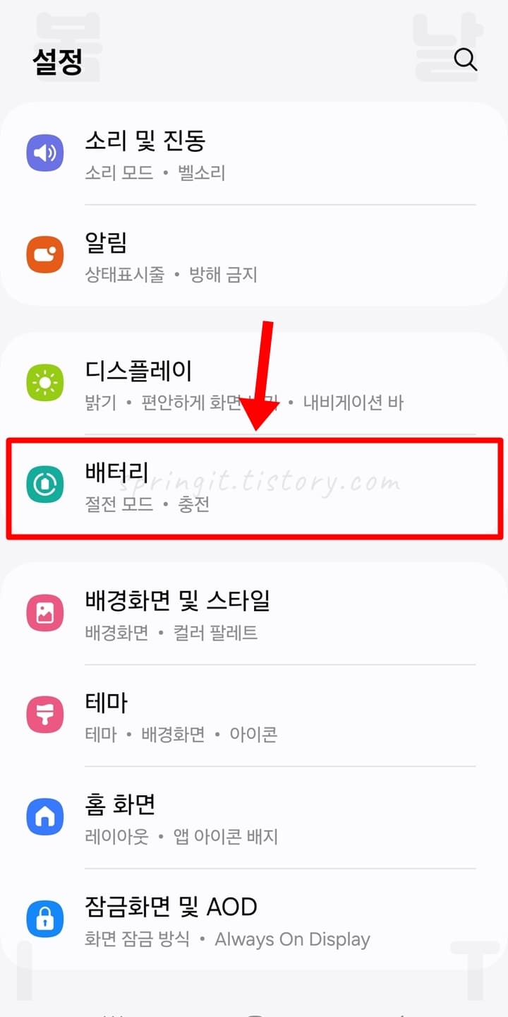 2. 배터리를 클릭합니다.