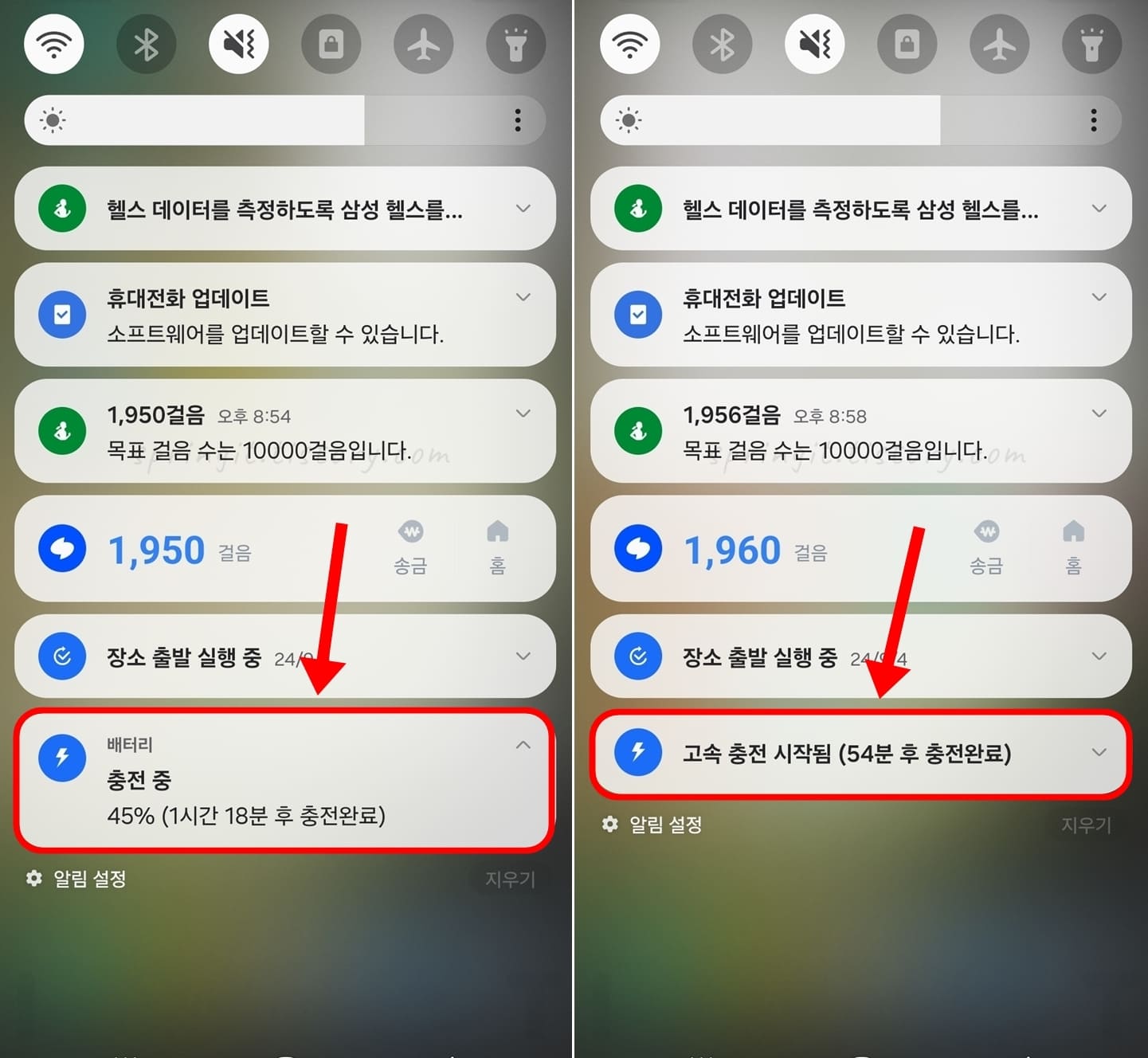 갤럭시 알림창에서 고속 충전 확인 방법