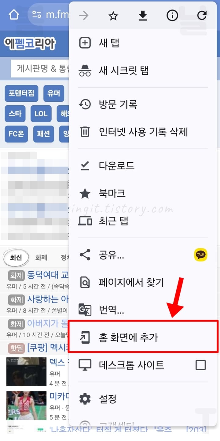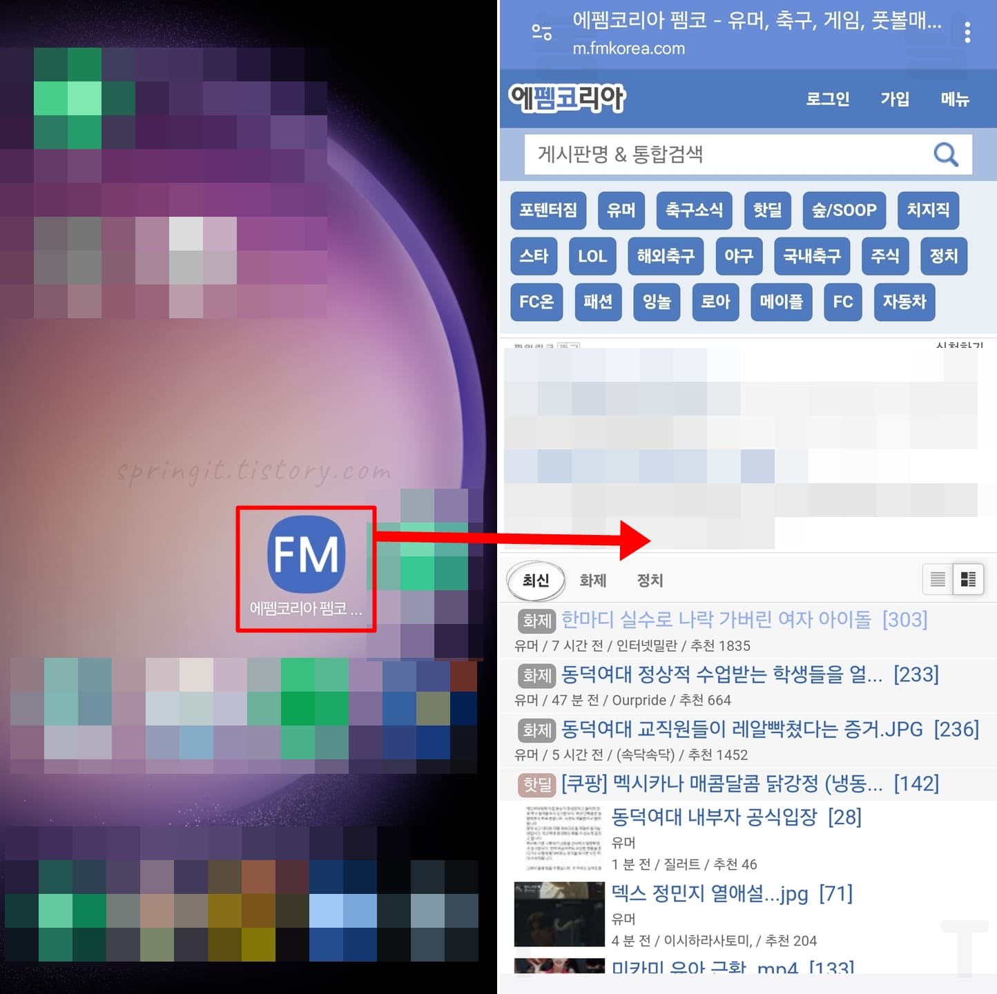 안녕하세요 봄날의아이티입니다. 오늘 글에서는 모바일 크롬 바로가기 만들기 방법을 소개드리도록 하겠습니다. 스마트폰을 사용할 때 자주 접속하는 사이트가 하나쯤은 있을 수 있는데요. 저의 경우에는 에펨코리아라는 커뮤니티 사이트를 요새 자주 접속해서 보고 있는데 매번 주소창이나 검색창을 이용하여 사이트를 찾아 들어가는 과정이 매우 귀찮게 느껴지더군요. 그래서 방법을 찾아보다가 특정 사이트를 홈화면에 바로가기 아이콘으로 추가하여 이용할 수 있다는 사실을 알게 되어 오늘 설정해주게 되었습니다. 이렇듯 홈화면에 웹사이트 바로가기 아이콘을 추가하면 한번의 클릭만으로 모바일 크롬의 해당 사이트가 실행된 상태로 이동되는 만큼 매우 편리합니다. 그래서 이번 본문에서 모바일 크롬 바로가기 만들기 방법을 안내드리겠으니 따라 설정하여 활용해보시길 바랍니다.