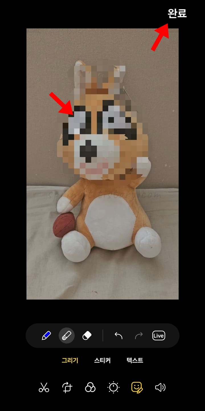 9. 모자이크로 처리하고 싶은 영역을 손가락 터치로 모두 칠합니다.