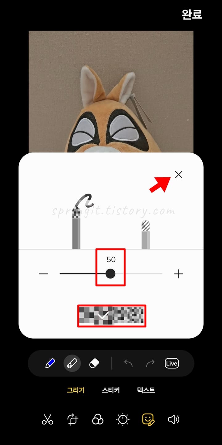 7. 모자이크 펜의 굵기와 모자이크 강도를 설정합니다.