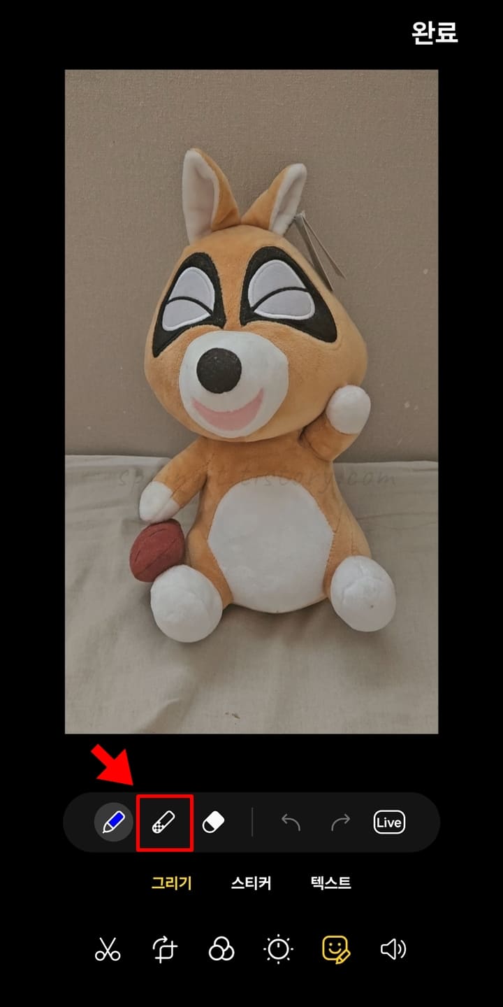 4. 하단 기능 버튼에서 웃는 이모지 모양의 그리기 버튼을 클릭합니다.