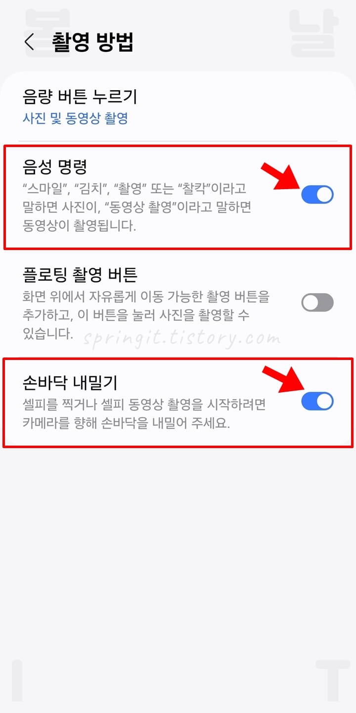 4. 음성 명령 및 손바닥 내빌기 기능을 활성화합니다.