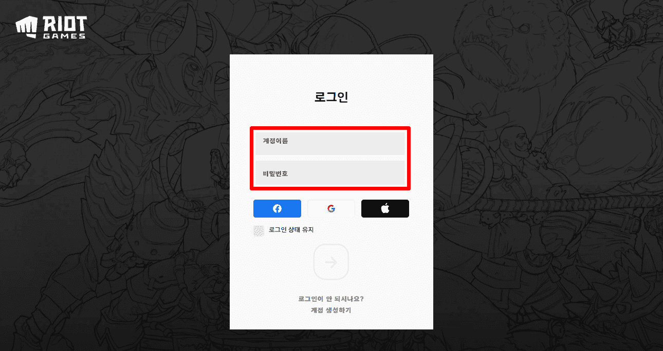 3. 롤 아이디와 비밀번호를 입력해서 로그인합니다.