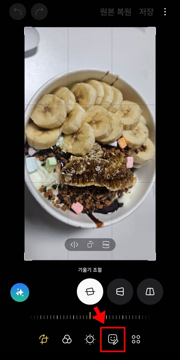 3. 하단 기능에서 웃는 이모티콘 모양의 그리기 버튼을 클릭합니다.
