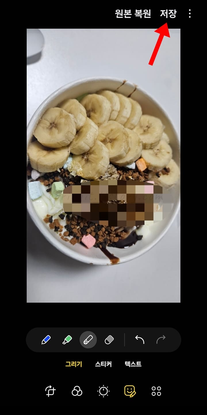 9. 모자이크가 적용되었다면 우측 상단의 저장 버튼을 클릭합니다.